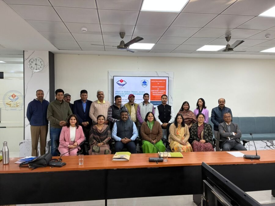 देहरादून : जनपद देहरादून के सुदधोवाला स्थित सेंटर फॉर रिसर्च एंड ट्रेंनिंग इन फाइनेंशियल इंस्टिट्यूट में कौशल विकास एवं सेवायोजन विभाग के समस्त सेवायोजन अधिकारियो के लिए बेंगलुरु स्थित संस्था इंटरनेशनल स्कूल आफ काउंसलिंग एंड हॉलिस्टिक स्टडीज द्वारा पांच दिवसीय सर्टिफाइड करियर डेवलपमेंट प्रोफेशनल प्रशिक्षण कार्यक्रम का आयोजन किया गया। जिसमें विभाग के निदेशालय स्तर से लेकर जनपद स्तर तक के समस्त अधिकारियों द्वारा प्रतिभाग किया गया । प्रशिक्षण कार्यक्रम के समापन के अवसर पर विभागीय सचिव सी रविशंकर भी उपस्थित रहे ।संस्था की ओर से प्रशिक्षक के रूप में कृष्णा अय्यर एवं ममता तनेजा द्वारा प्रशिक्षण प्रदान किया गया । प्रशिक्षण का मुख्य उद्देश्य राज्य के सुदूरवर्ती शिक्षण संस्थानों में करियर के प्रति छात्रों में करियर के प्रति जागरूकता पैदा करना एवम प्रशिक्षण के बाद अधिकारी गणों द्वारा धरातल पर ले जाने की अपेक्षा की गई है।